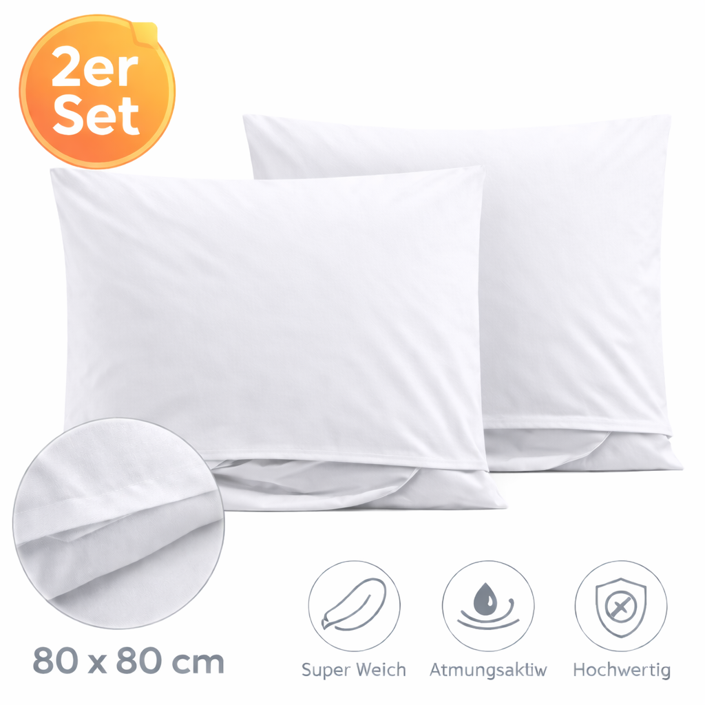 2er Pg. Kopfkissenbezug 80x80cm kochfest, Hotelverschluß, weiß, Linon, 95 Grad Wäsche, Kissenhülle 100% Baumwolle